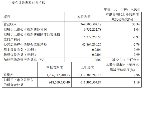 宝光股份2022年一季度主要财务指标