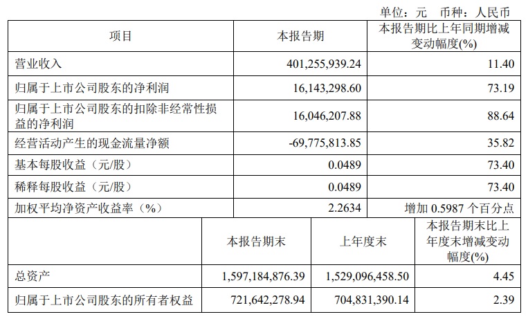 宝光股份2024年一季度主要财务指标