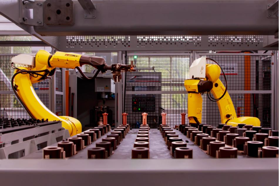 作为宝光股份智能制造年度重点项目,真空灭弧室关键零件智能生产线的投入使用显著提高了公司零件生产质量、效率和智能制造水平;在降低生产成本的同时,产线充分应用5S管理和定置管理等精益工具和方法,通过对称双回字形布局实现了生产现场面积的最大化利用,整体呈现饱和矩形布置;7台高档数控设备和2台工业机器人全部实现了在线运行监测和故障诊断;产线运用设备状态信息实时显示和处理等一系列先进智能制造技术,并配置有智能安全防护网及设施,有效保证人机协同作业的安全。