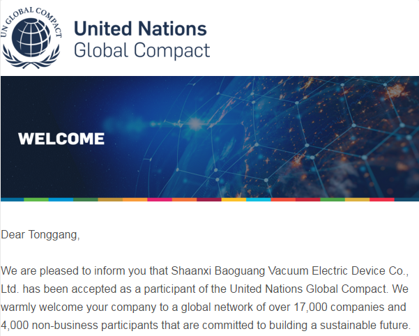 近日,宝光股份正式批准加入联合国全球契约组织(United Nations Global Compact,简称UNGC),标志着宝光股份在提升国际品牌形象、深化企业社会责任实践方面迈出了坚实的一步。