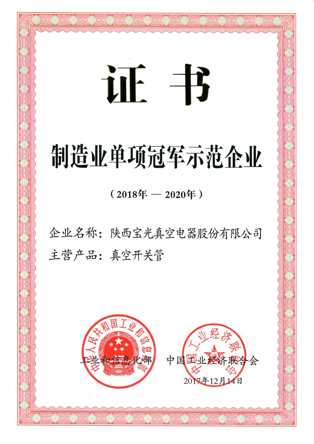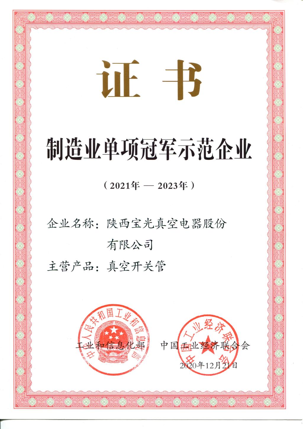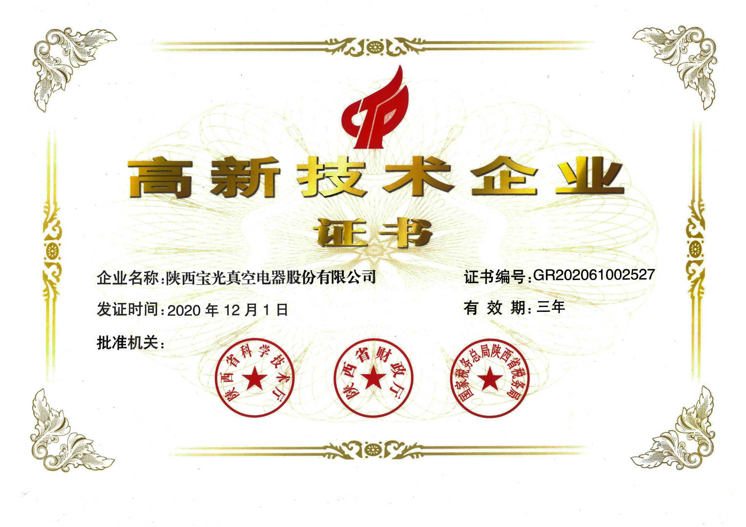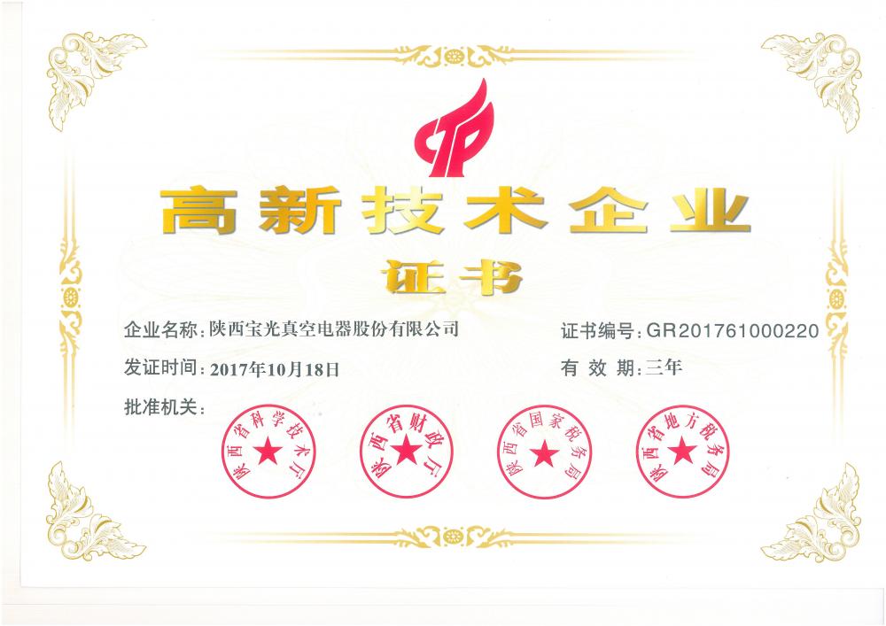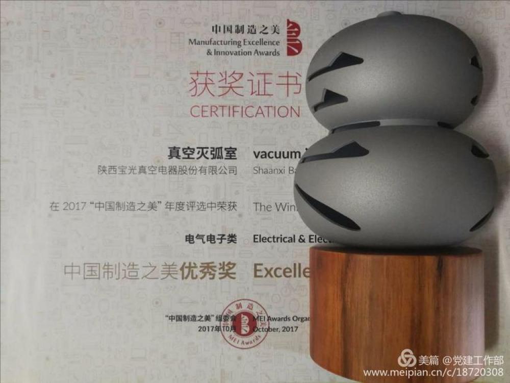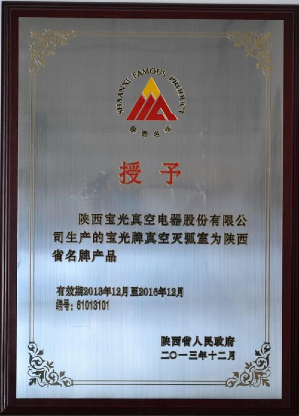 - 宝光牌真空灭弧室被授予陕西省名牌产品称号