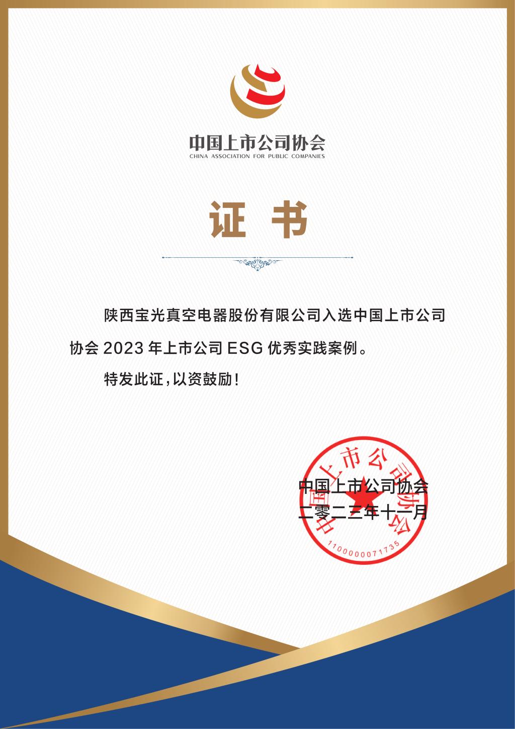- 2023年入选中国上市公司协会ESG优秀实践案例
